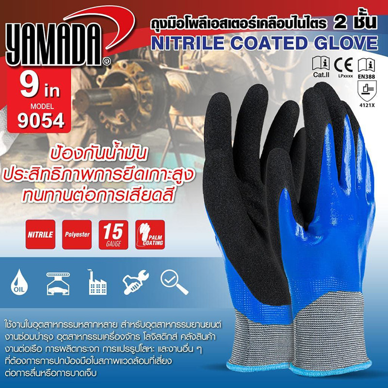 ถุงมือโพลีเอสเตอร์เคลือบไนไตร 2 ชั้น กันน้ำ 9″ รุ่น 9054