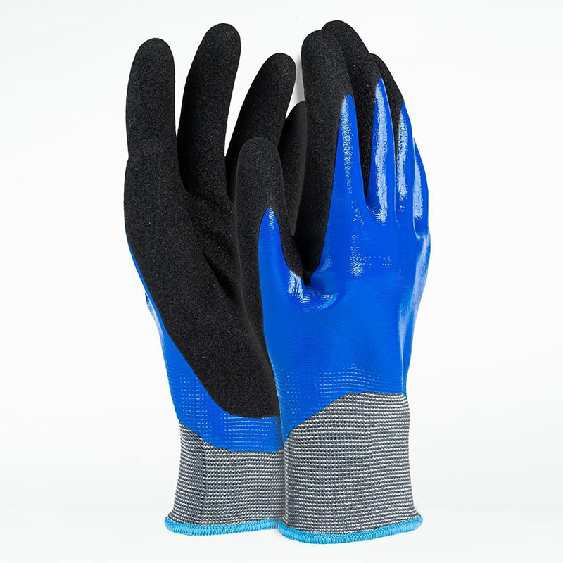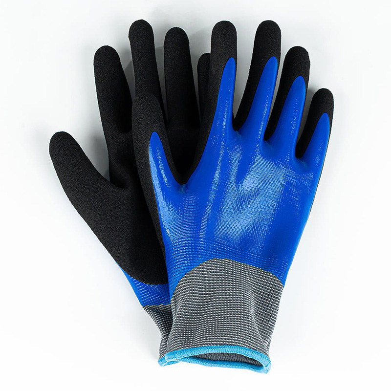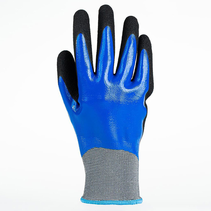 ถุงมือโพลีเอสเตอร์เคลือบไนไตร ป้องกันของเหลวซึมผ่าน มีประสิทธิภาพการยึดเกาะสูง แม้ในสภาวะการทำงานที่มีน้ำหรือน้ำมัน ระบายอากาศได้ดี ข้อมือถักแน่นหนาป้องกันเศษวัสดุเข้าภายในถุงมือ