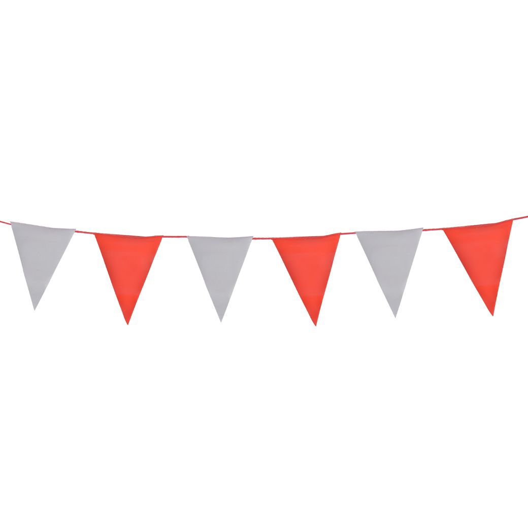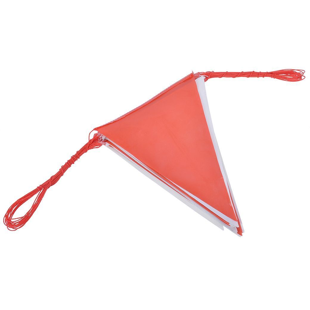 - ธงราวขาวแดง YAMADA ผลิตจากพลาสติก เป็นธงราวแบบรูปสามเหลี่ยม เย็บร้อยเชือกสีแดงสลับขาว ความยาว 20 เมตร