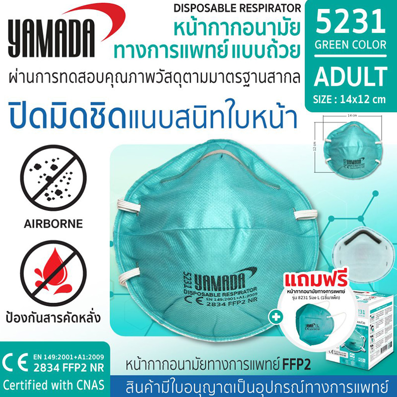 - ได้มาตรฐาน CE EN149:2001+A1:2009 2834 FFP2 NR CNAS L1499