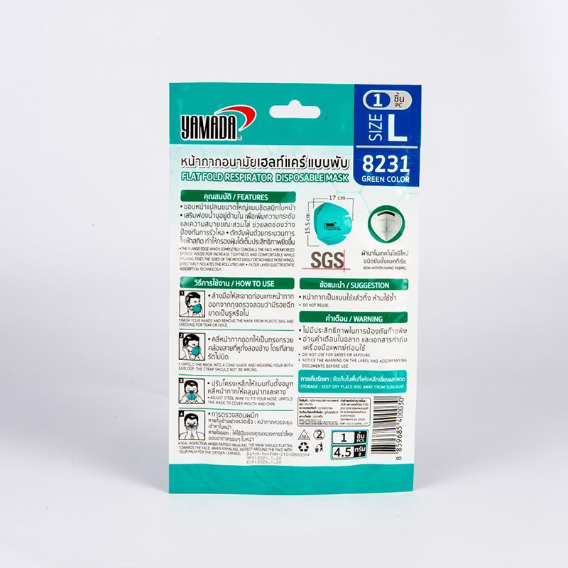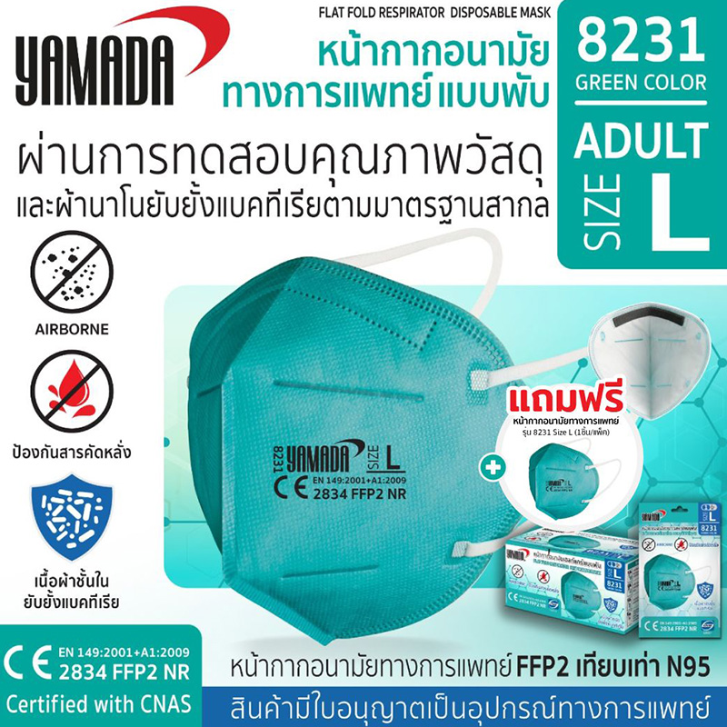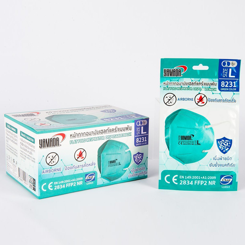 - หน้ากากอนามัยแบบพับ FFP2 เนื้อผ้ายับยั้งแบคทีเรีย ผ่านการทดสอบ เทียบเท่า N95