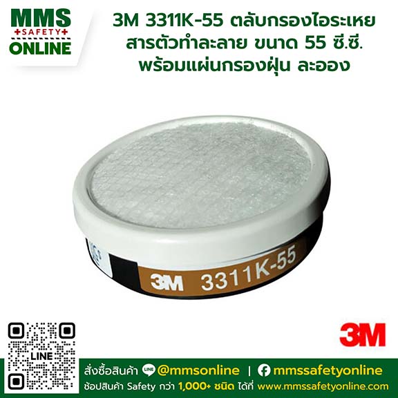 3M 3311K-55 ตลับกรองไอระเหยสารตัวทำละลาย ขนาด 55 ซี.ซี. พร้อมแผ่นกรองฝุ่น ละออง