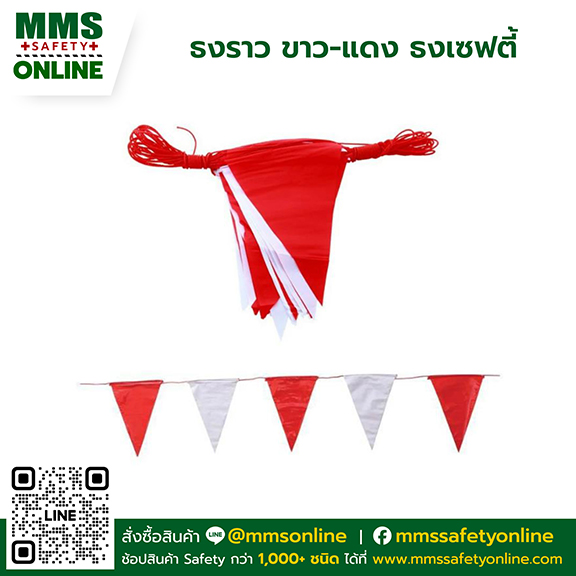 ธงราว Marking Flag Strips ธงสามเหลี่ยม ขาว-แดง 20M